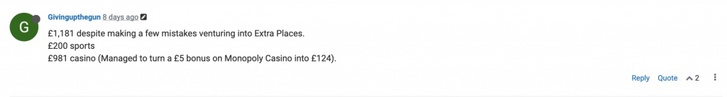 There are many ways to approach matched betting and a forum is a useful place for people to share ideas, good and bad. Shared experiences with real people is also a comfort at times. As mistakes are inevitably made, it’s encouraging to see you’re not the only one and that any losses are quickly recovered by other opportunities.