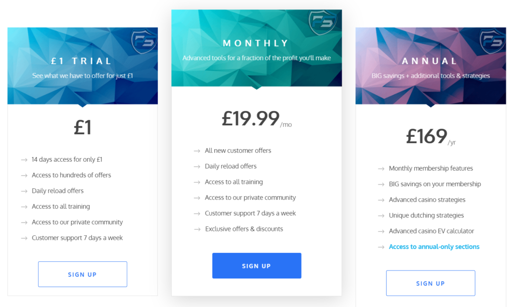 Unlike other betting sites, Profit Squad does not offer a free trial but a minimum subscription fee of £1 for 14 days with full access which can extend to monthly and annual packages. The pricing for the renewed account cost £19/month. However, if you sign up as a member and you can also subscribe for £169 annually.